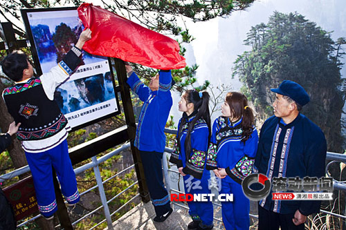 帖子描述稱,1月25日上午,張家界數(shù)名身著土家族服裝的原住居民為“南天一柱”(又名“乾坤柱”)更名標識牌舉行了揭牌儀式。