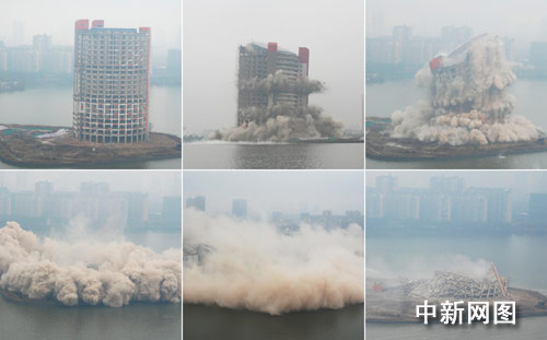 在現(xiàn)場(chǎng),記者看到爆破后遺留的廢墟高約7至8米,據(jù)負(fù)責(zé)爆破的官員介紹,爆破產(chǎn)生的建筑垃圾面積達(dá)1萬平方米,重約4萬噸,將盡快被送往南昌市郊的垃圾填埋場(chǎng)。(完)