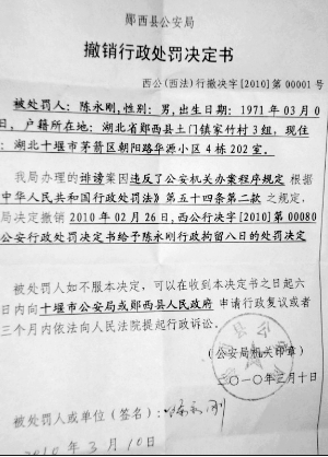 3月10日,十堰市警方公布鄖西警方跨縣拘留發(fā)帖人案復(fù)核結(jié)果。認(rèn)定該案的辦理違反了公安機(jī)關(guān)辦案程序規(guī)定。隨后,鄖西縣政府和縣委書記連發(fā)網(wǎng)絡(luò)聲明,責(zé)成縣公安局對(duì)陳永剛道歉并吸取教訓(xùn)。