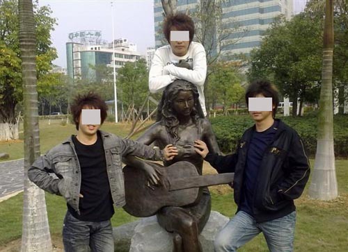 廣州天河區(qū)某重點高校的80后女大學(xué)生蕭蕙說,那可是公園里面的人像雕塑,作出這樣的動作不僅侮辱了藝術(shù),侮辱中華傳統(tǒng)文化,更是侮辱他們自己本身的人格品質(zhì)。她憤怒地斥責(zé)這種行為:真是太無恥了。