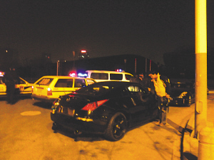 就在記者采訪的時(shí)候,4輛豪車又回到了奧體北門。大家停好車,紛紛下車抽煙聊天。記者急忙追了上去,只見在奧體北大門西側(cè)路面上,一字排開著4輛顏色不一的豪華跑車,車尾處留下了一道道長長的剎車痕跡,足見停車前的速度很快。4輛顏色不一的豪華跑車中,有三輛車子上沒有上牌照,有一輛車子車牌擋著。車上下來的都是年輕人,車手都是男的,每人身邊跟著一位大美女。車主們說這些跑車都是自己私車,個(gè)個(gè)都自稱是富二代,他們每個(gè)人所開的跑車都在80萬至100多萬之間,還不是最好的車輛。見此情況,記者立刻報(bào)了警,并拿出相機(jī)拍照采訪。