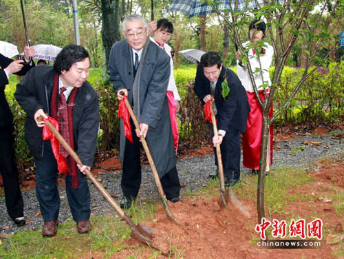 中新網(wǎng)長沙4月14日電(鄧霞 劉柱)冒著瀟瀟春雨,10來名日本友人今天專程來到湖南涉外人員培訓(xùn)中心中日友好櫻花園,為這里新植的700株櫻花樹苗添土。據(jù)介紹,該櫻花園由日本育櫻會捐資興建。