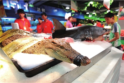 前天(21日),北京豐臺區(qū)鎮(zhèn)國寺北街永輝超市草橋店開業(yè),在生鮮賣場公開銷售一條兩米長的鱷魚,鱷魚一天內(nèi)被分部位訂走,此舉引發(fā)市民爭議。