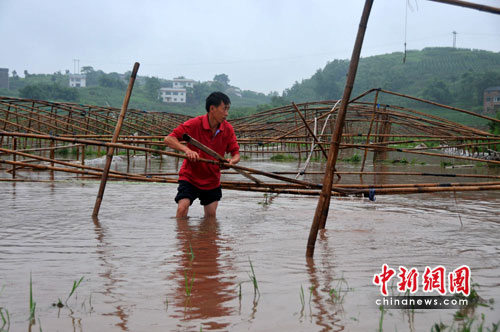 中新網(wǎng)重慶6月23日電(盧宗艷 銀雪)“早上還到縣城送貨,路上就接到工人電話說大棚被沖毀了,來回不到2個小時!23日,重慶綦江縣永新鎮(zhèn)石塔村村民何家全看著自己承包的60余畝大棚蔬菜基地瞬間變成一片汪洋大海,心疼地說不出話來。