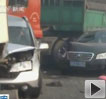 實(shí)拍:水泥槽罐車撞壓私家車