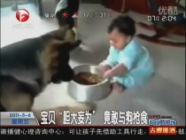 寶貝“膽大妄為” 竟敢與狗搶食