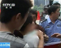深圳一名男子站在天橋的外沿,一手揮動匕首,一手抓著護欄,欲跳樓。兩名女子站在他前面不停的勸導他。半小時后,兩名女孩在一旁勸說許久未果,其中一名女孩突然上前摟住男子脖子親吻他,消防人員趁機將男子拉住,成功化解了這場危機。