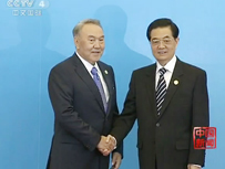 6月16日,國家主席胡錦濤在莫斯科會見俄羅斯聯(lián)邦政府總理普京。會見前,胡錦濤主席在普京總理陪同下參觀了俄羅斯天然氣工業(yè)公司中央調(diào)度室。