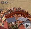 【解說】眼前這片花海是由30萬盆菊花組成的,8日江西省昌市第23屆菊花展開幕,3萬平方米的花海吸引了許多市民來此參觀,菊花展中有幾個造型獨特的主題展臺成為一大亮點。