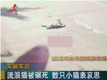 流浪母貓被碾死 數(shù)只小貓“表哀思”