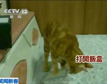 實(shí)拍:貓咪開飯盒 自己動足取食