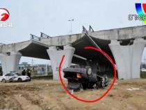 坑爹的高架橋讓轎車直接翻下橋底