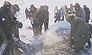 在年近80歲的漁把頭帶領(lǐng)下,大家來(lái)到標(biāo)記好漁網(wǎng)的地方,幾位魚(yú)把頭拿著破冰工具,不一會(huì)兒的功夫,數(shù)尺厚的冰面上被鑿出了一個(gè)魚(yú)眼,隨著漁網(wǎng)被拉出,一條條大小不一的魚(yú)兒在冰面上活蹦亂跳。