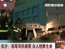 長沙:追尾司機(jī)被困 眾人搶救生命
