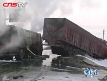 新疆兩重型貨車(chē)相撞 40余噸潤(rùn)滑油全部外泄