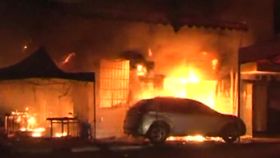 瘋狂“飛車”沖入夜宵店引發(fā)大火
