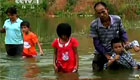 廣西乘竹筏上學(xué)遭禁 家長(zhǎng)改帶孩子趟水