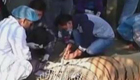 實拍飼養(yǎng)員給老虎剪指甲