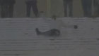 驚魂一刻!實拍爬山游客經(jīng)提醒 及時躲過泥石流