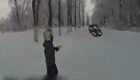 實拍男孩手拉無人機滑雪