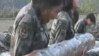 女兵訓練抱圓木仰臥起坐