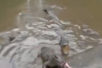 現(xiàn)場:竊賊被追沖入鱷魚池 被民警救回