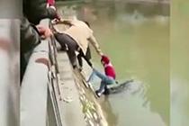 眾人“搭人鏈”救落水老人