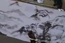 掃把蘸墨畫出山水畫