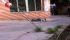 【解說】接到報警后,消防隊員立即趕赴現(xiàn)場營救。只見該男子光著膀子一動不動地俯臥在23樓的遮陽臺上,手臂上還有一縷血絲。救援人員不斷安慰男子保持冷靜,不要緊張。由于操作空間不大,救援人員不方便下到外遮陽臺頂施救,便用安全繩放下一條腰帶讓男子系好,進行保護,并在一旁架設(shè)梯子。在做好安全防護后,緩緩將被困男子往上拉。經(jīng)過近10分鐘的緊急施救,男子被成功救下。被救后,男子仍心魂不定。