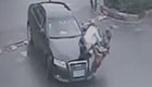 【解說】10月27日,在江蘇省南京市一商場外,一名戴著耳機,身著法院制服的工作人員正在根據(jù)耳機里的指令指揮現(xiàn)場,強制打開商場的卷簾門,這一舉動引起了人們的注意。