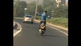 男子路上特技表演 不要命了