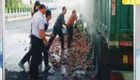 運西瓜貨車輪胎過熱自燃 眾人砸瓜救火