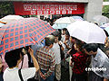 上海家長冒雨“陪考”