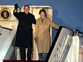 圖:美國(guó)總統(tǒng)布什夫婦走下舷梯