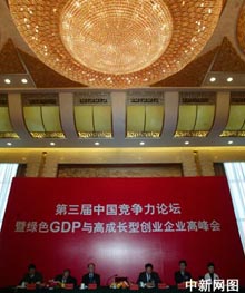 由中國(guó)新聞社主辦的第三屆中國(guó)競(jìng)爭(zhēng)力論壇暨綠色GDP與高成長(zhǎng)型企業(yè)高峰論壇10日在北京人民大會(huì)堂開(kāi)幕。本次論壇的主題是“倡導(dǎo)‘十一五’綠色成長(zhǎng)理念,打造高成長(zhǎng)型企業(yè)”。