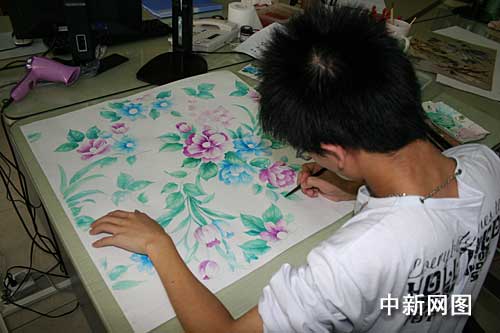 浙江現(xiàn)代紡織工業(yè)研究中心工作人員為中小企業(yè)手繪設(shè)計稿