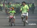 圖:濟南5歲小童參與“無車日”宣傳