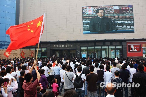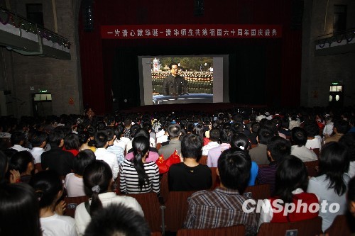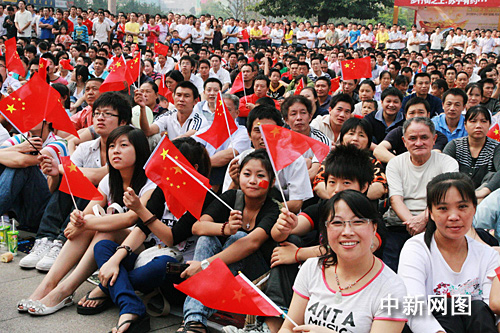 圖:黑龍江大學生揮舞國旗為祖國歡呼