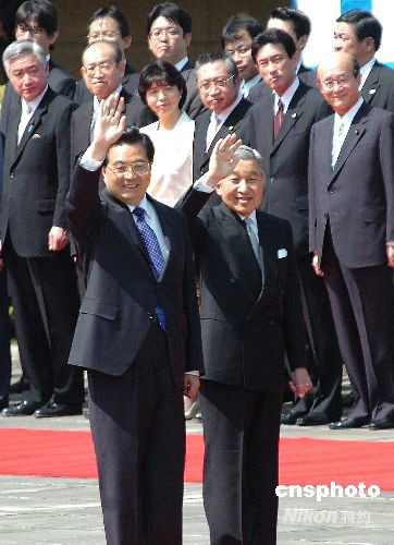圖:胡錦濤出席日本天皇舉行的歡迎儀式