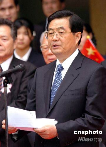 胡錦濤在日本橫濱山手中華學(xué)?赐麕熒