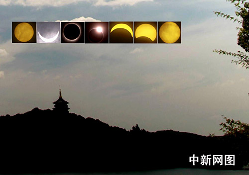 杭州西湖上日全食全程效果圖 如夢如幻