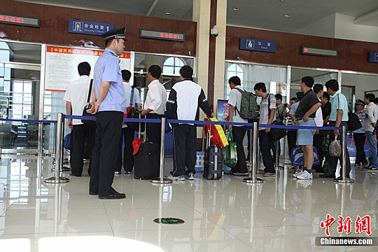 圖:伊春機(jī)場乘客在辦理登機(jī)手續(xù)
