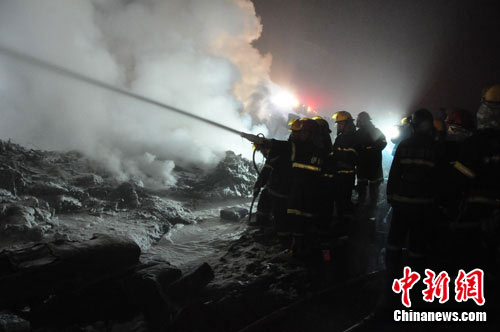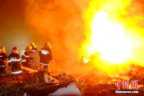 救援人員在飛機(jī)殘骸邊展開救援工作