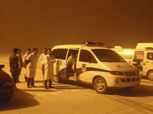 圖:救援人員在飛機(jī)失事現(xiàn)場待命