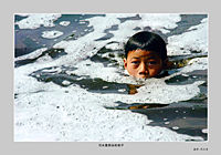 河水里游泳的孩子