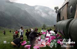 首架直升機成功降落汶川縣城送去救災(zāi)物資