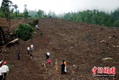 貴州安順市關(guān)嶺縣“6.28”山體滑坡災(zāi)害現(xiàn)場搶險(xiǎn)救援指揮部指揮長、安順市副市長羅榮彬29日稱,此次山體滑坡體量達(dá)到100萬方,連日強(qiáng)降雨及當(dāng)?shù)氐匦螚l件等因素都讓救援工作舉步維艱。 圖為搜救人員救出被困群眾。(渝分供圖)