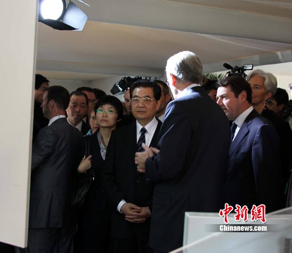 11月6日上午9點(diǎn)多,中國國家主席胡錦濤和夫人劉永清乘車前往位于尼斯以北卡羅斯生態(tài)技術(shù)園內(nèi)的施奈德電氣集團(tuán)卡羅斯中心。這場(chǎng)參觀歷時(shí)約40分鐘,是胡錦濤此次法國之行的最后一場(chǎng)活動(dòng)。圖為胡錦濤聽取對(duì)方介紹情況。