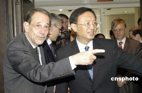 當?shù)貢r間11月26日,中國外交部長楊潔篪(右)在美國首都華盛頓會見了前來參加中東和會的歐盟理事會秘書長兼歐盟負責外交和安全政策的高級代表索拉納。中新社發(fā) 邱江波 攝