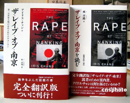 在“南京大屠殺”事件70周年之際,美籍華裔女作家張純?nèi)绲臍v史著作《南京大屠殺》日文譯本終于在日本出版發(fā)行。該書由在日華僑巫召鴻翻譯、日本同時代社出版。除了張純?nèi)缭g本以外,《解讀<南京大屠殺>》同時出版,詳細(xì)介紹了《南京大屠殺》日文版歷經(jīng)10年才得以面世的經(jīng)過。中新社發(fā) 段躍中 攝